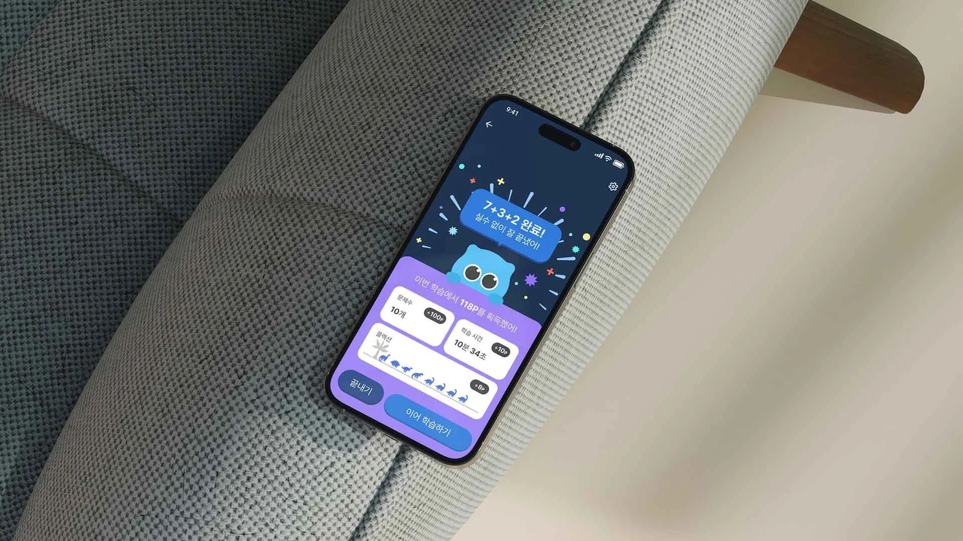 학습을 유닛–단계–문항의 구조로 구조화하고, 각 단계마다 기록 데이터와 피드백을 명확히 정의해 학습 흐름과 성취가 자연스럽게 인식되도록 설계했습니다.